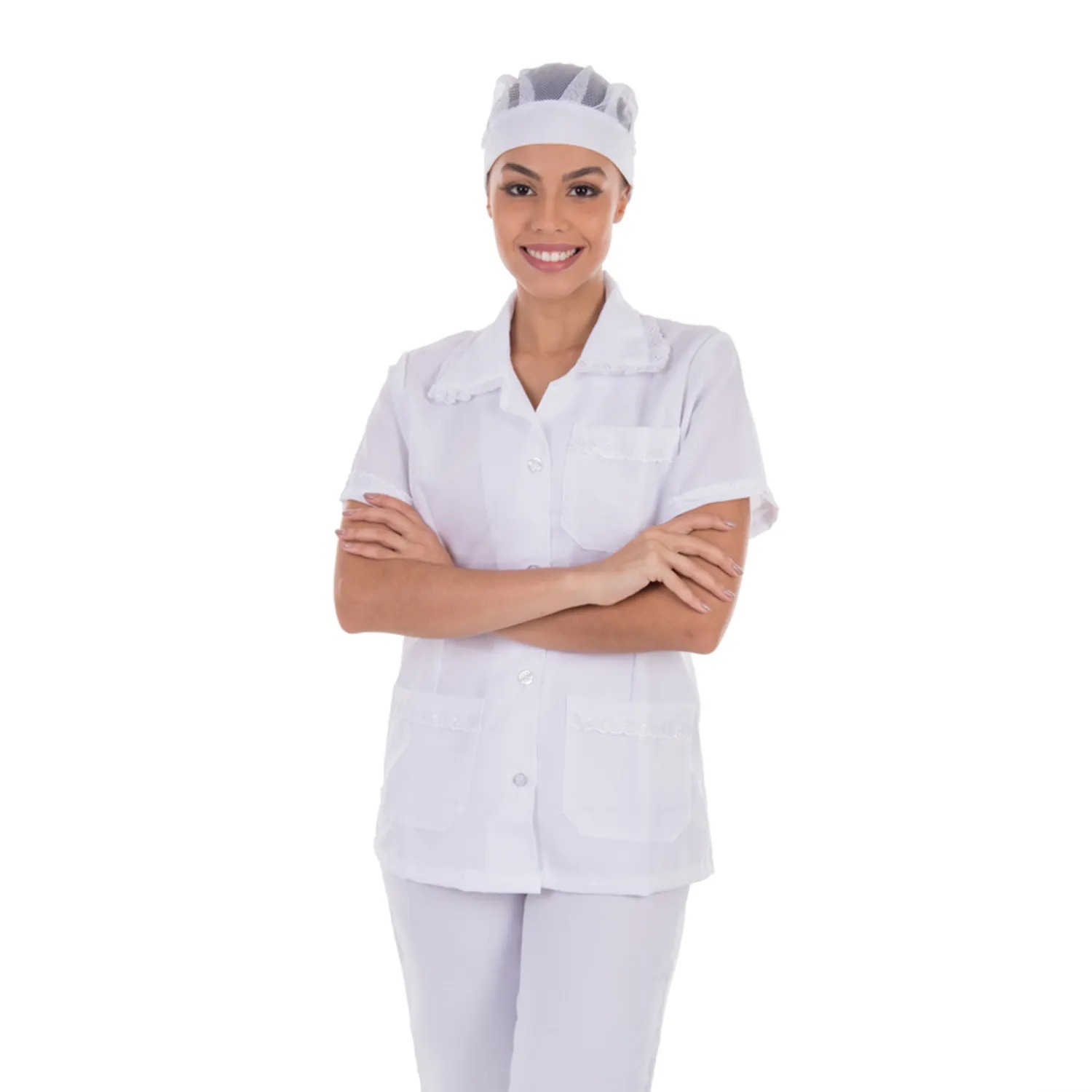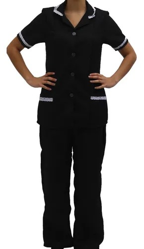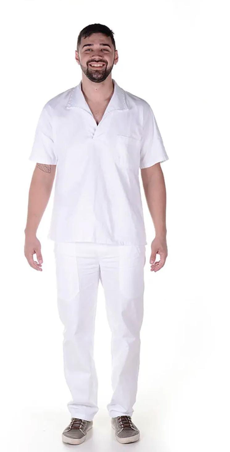 Conjunto de Jaleco e Calça em oxford com bordado ingles para copeira, arrumadeira, faxineira